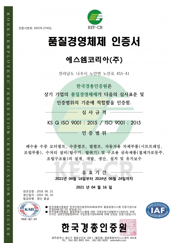 ISO 9001(Certificate of Quality Management System)