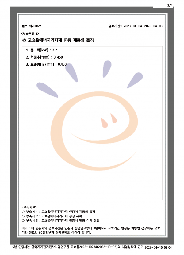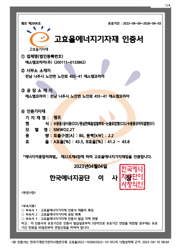 High Efficiency Energy Materials & Equipment Certificate_SMWO2.2T_2023